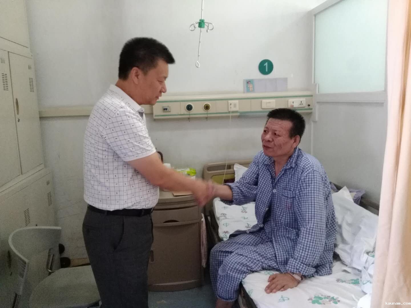 5月31日下午,副局长蔡林代表局领导班子到同仁医院再次看望了患病住院的社科文印部职工王宝才,对其表示了慰问,询问了病情与身体情况,并嘱咐他当前要以身体健康为重,积极配合医生治疗。王宝才对局领导和同事们的关心爱护表示感谢。局工会成员孔雷、社科文印部主任莫志华一同看望慰问。